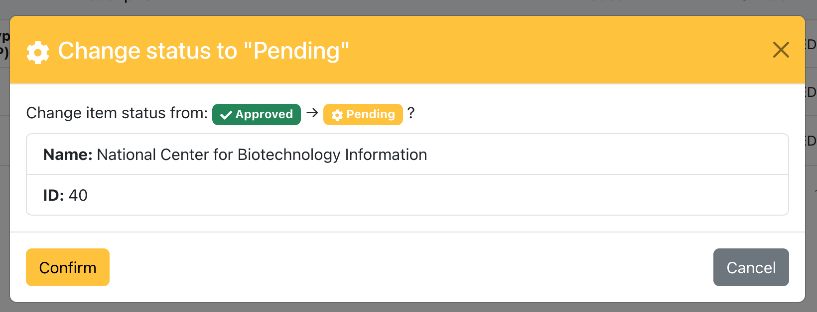 The status changes from Pending to Approvded and from Approved to Pending. In each change a super admin should check the the update to validate that everything is working smoothly.