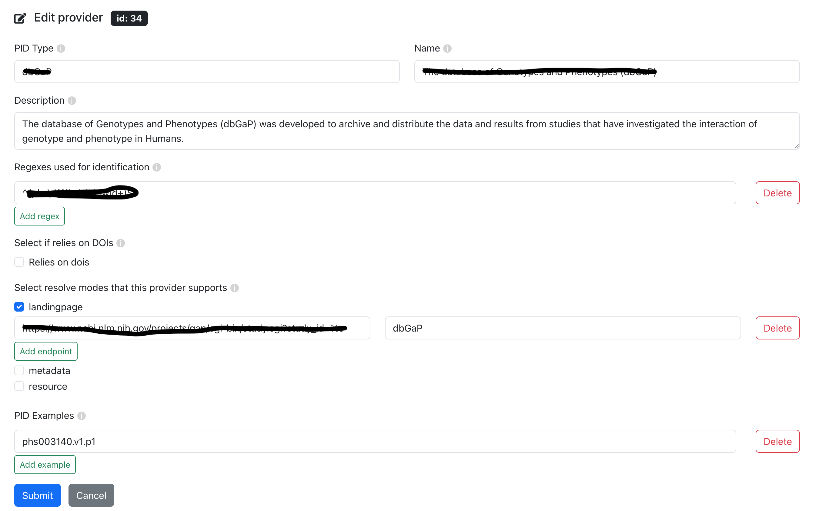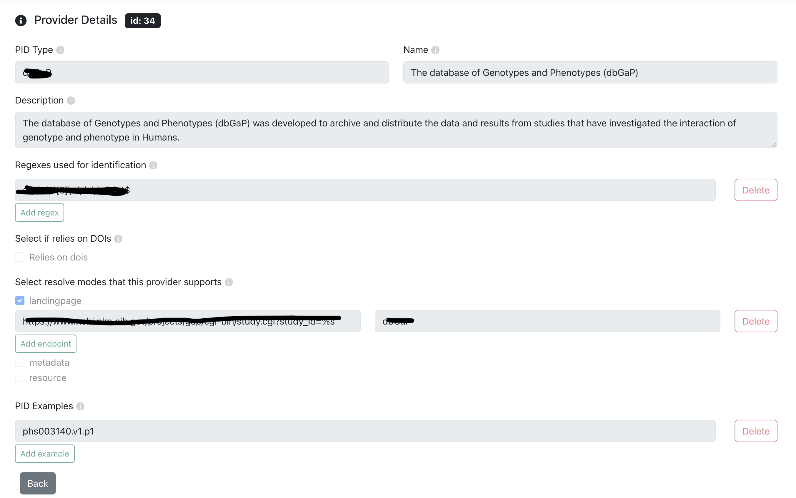 One of the main functionalities of the Metaresolver is the Management of the different PIDs / Providers.